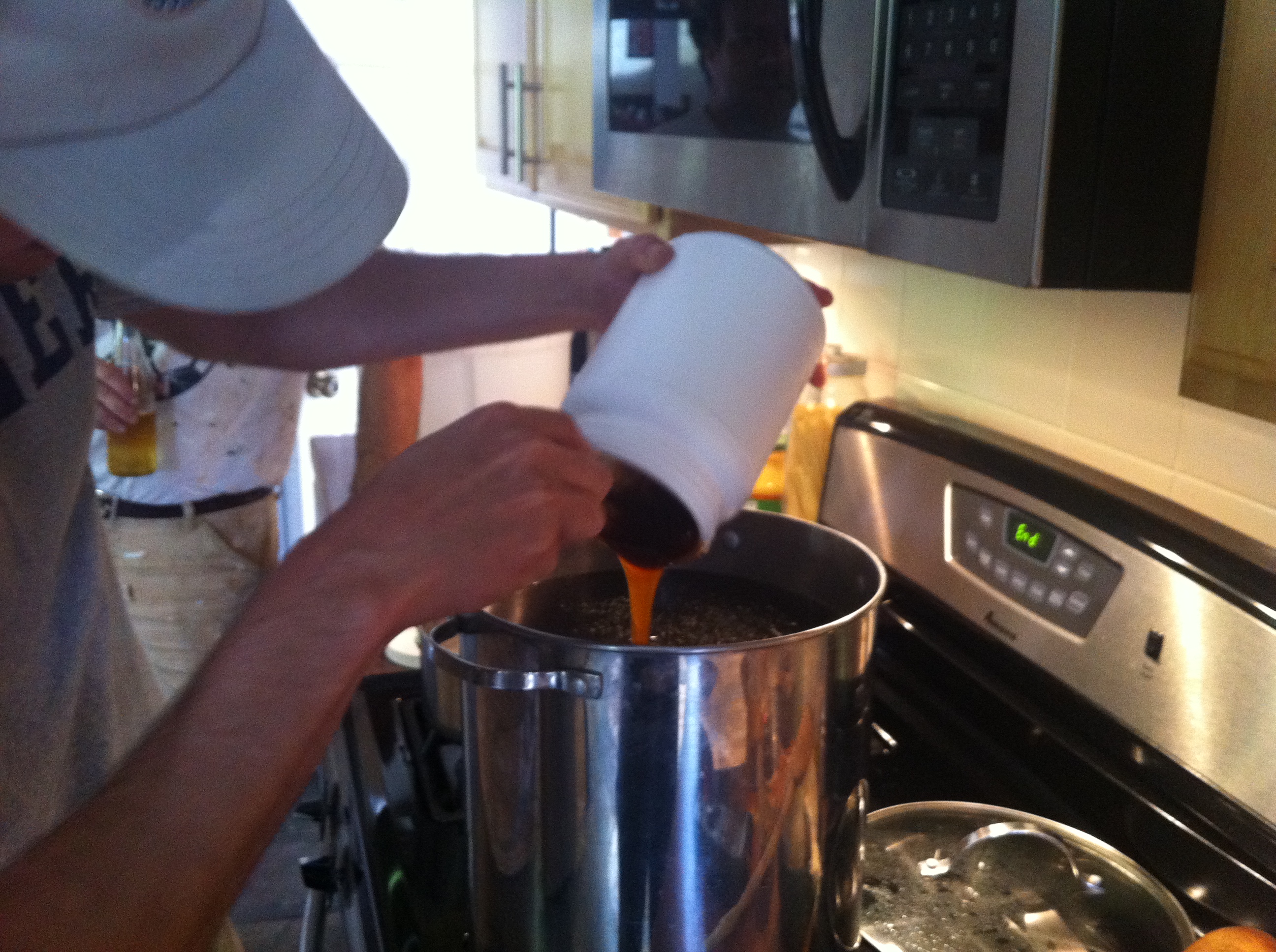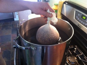 – steep the barley in a giant fabric tea bag for an hour, in the giant pot with 3 gallons of water