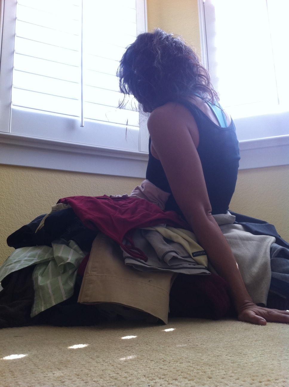 I don’t want all this stuff! It’s too much. A normal person does not need this much clothing! I looked around at all the shirts, yoga pants, and sports bras and remembered all the random purchases I had made back when I thought that moving to Boulder and having a new active lifestyle meant buying new stuff.