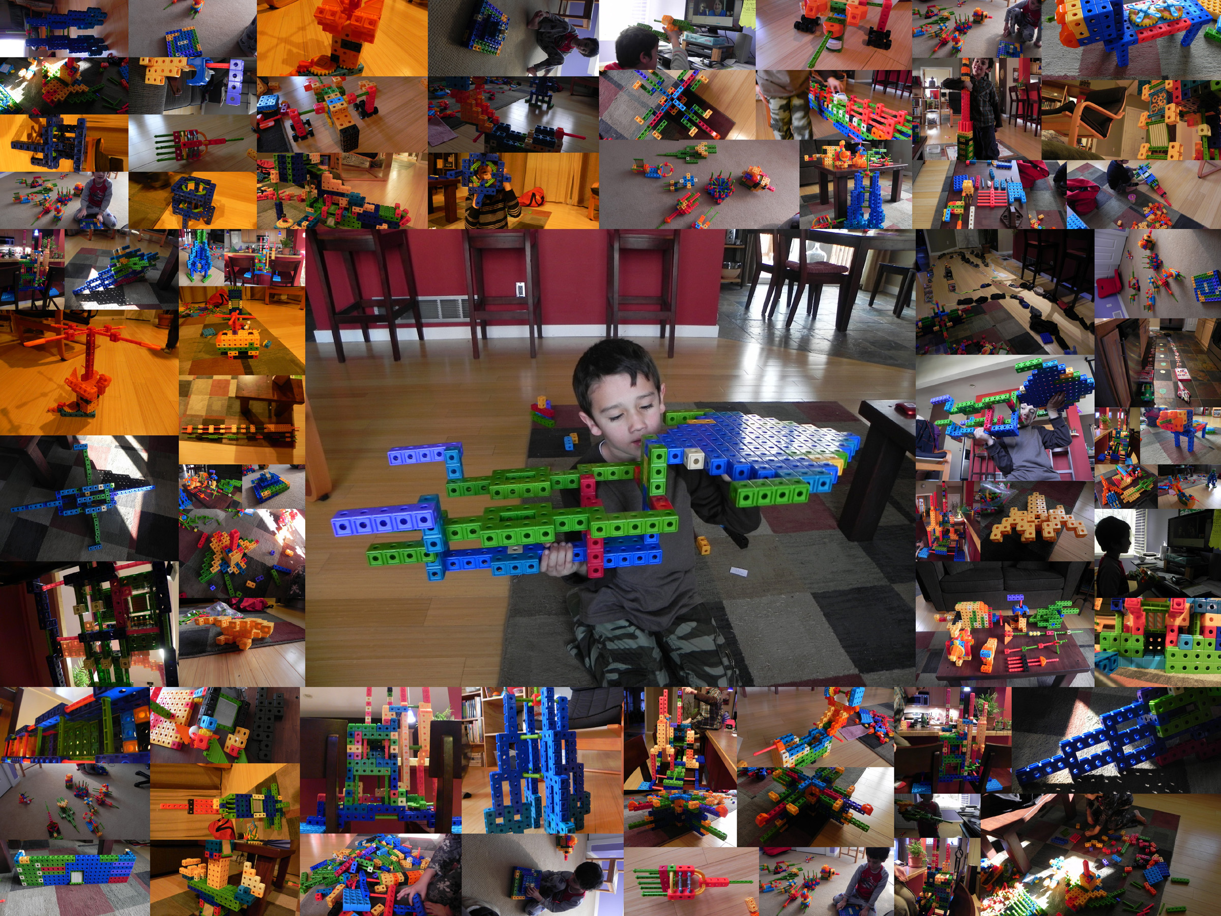 But unlike Lego, Trio is quite inexpensive. It comes in various packages at Target and other stores, the best value being the general block sets, as opposed to smaller kits designed to make a specific vehicle. I will admit that our little dude is a bit of an extreme Trio Consumer, having spent quite a bit of his own allowance to boost the size of the set – we might have $100 worth of the stuff in total. But that still puts the excellent play time he’s had with it at less than $1 per hour. If you factor in the intuitive knowledge of structural design that this type of play surely provides, it is a highly profitable activity to engage in.