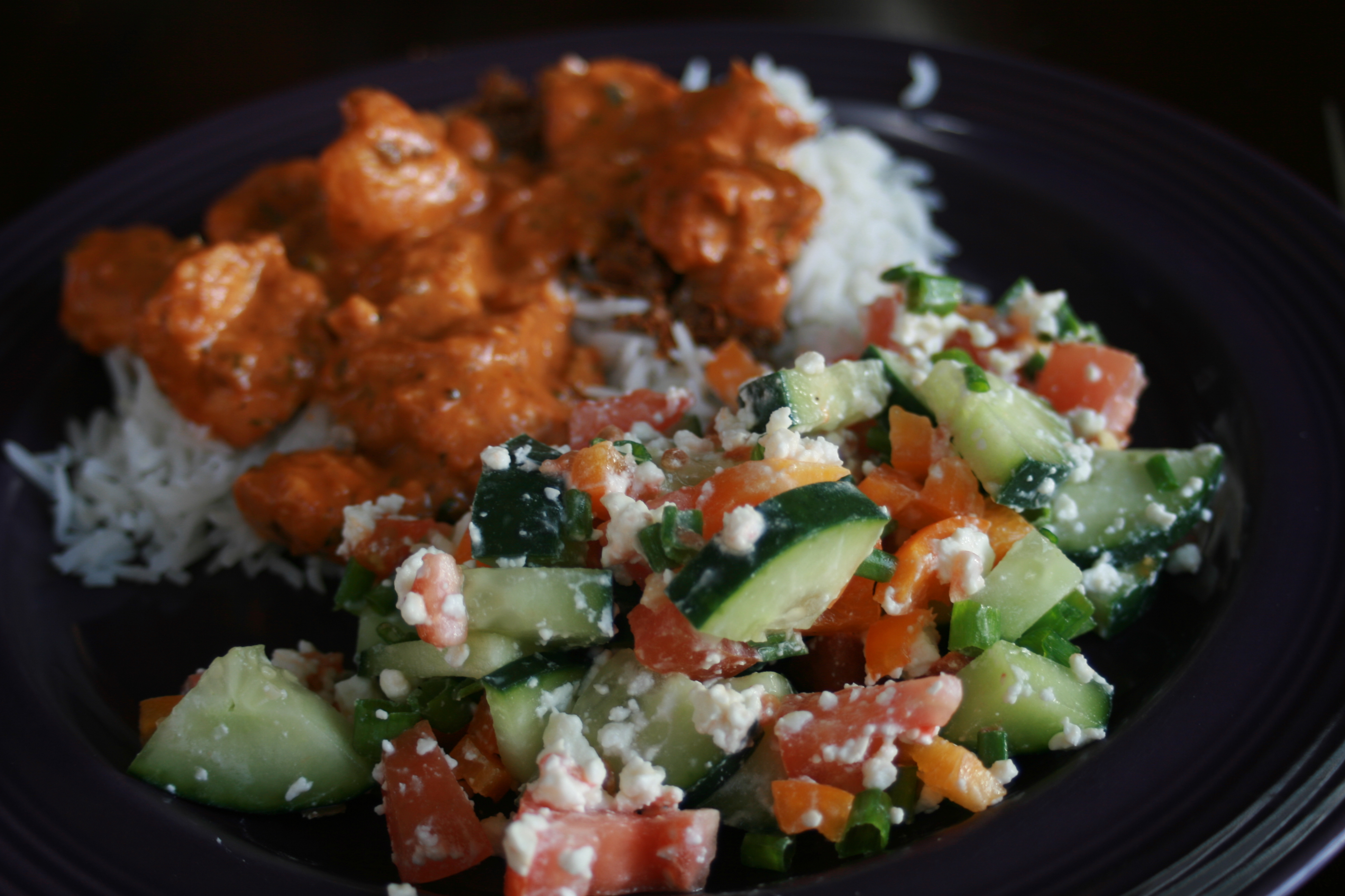 I think you need to spend another 10-15 minutes and post up a recipe for that (Indian?) chicken and vegetable salad for us! Haha, it looks so good.