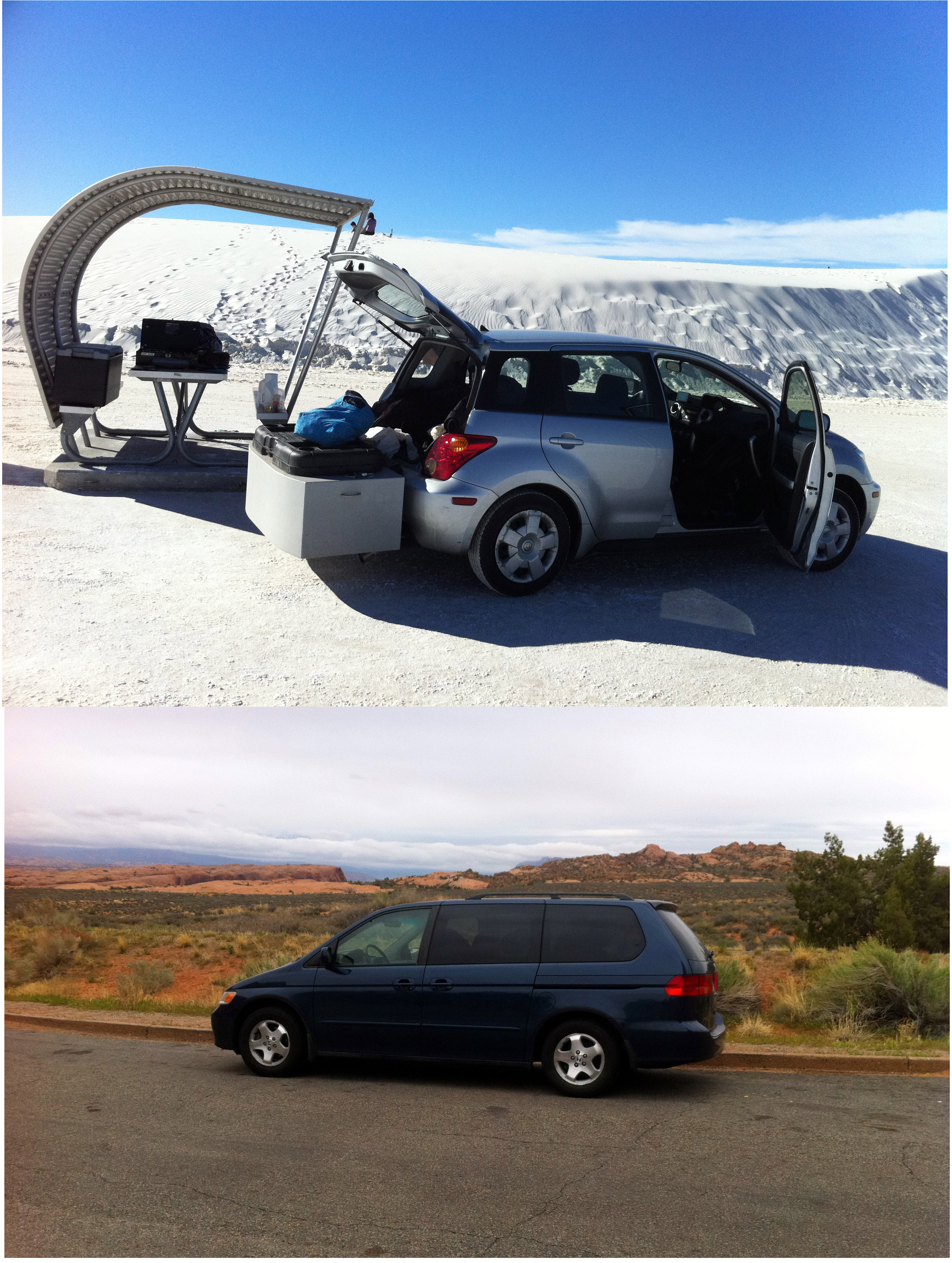 We’ve got you beat on person-poundage (only ~285 for 3 people) but we tend to pack too much stuff even for short trips. It also occurred to me just now that our electric cooler (plugs into the cigarette lighter) probably doesn’t help the gas mileage.