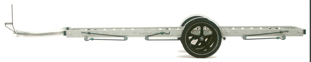 These things are highly configurable due to the modular design. Lengths range from 32 to 96 inches, width is 19 or 27 inches, back wheel can be mounted in various spots to accommodate an overhanging load up to about 15 feet (such as a canoe), and you can even get a Duallie version with two wheels on each side that will roll 600 pounds.