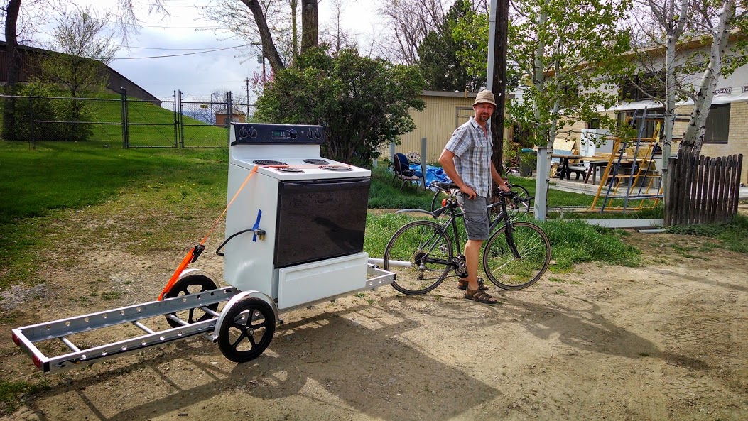 The obvious drawback of a huge cargo trailer is the huge amount of human energy required to pull it any significant distance. This isn’t much of an issue for me, since my building supply stores and the recycling yard are all within 3 miles of my house, and the elevation gain from the lowest point in town to my house is only 100 feet. But for larger cities or those days when I’m in a rush and tempted to drive instead of cycling, an electric bike conversion kit** (or a complete electric bike) would make an ideal companion for a trailer.