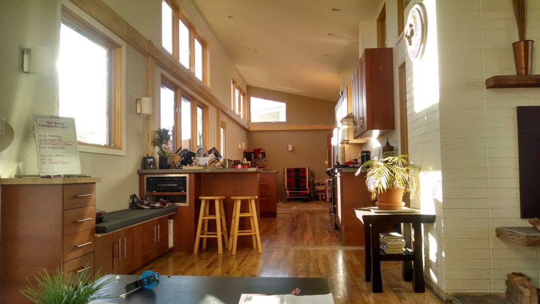 ..they’re off most of the time. This is because I built my windows into the side of the house that faces the sun, and keep those windows clean and free from curtains or other obstructions. This is not always an easy thing to change in your current house, but is a great factor to consider when shopping for your next one. And there’s a much bigger benefit than lower electricity and heating bills: higher happiness. Having a bright, daylit living space will improve your mood, productivity, and entire outlook on life.