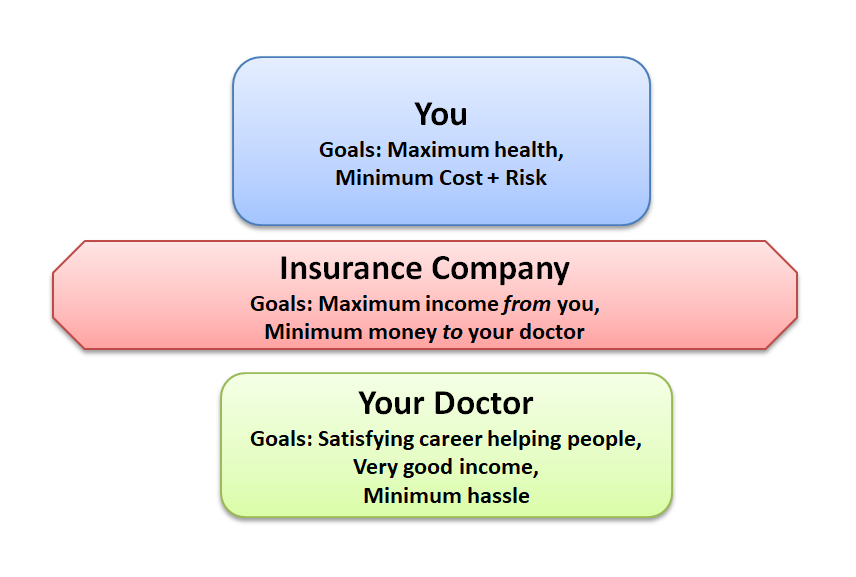 In our famously broken US healthcare model, an insurance company is wedged in between you and your doctors, and it has different objectives than you do.