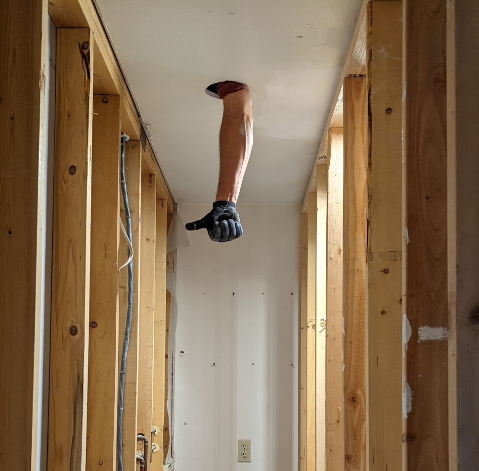 First…the arm…I’m contemplating hang a plant off the thumb, tickling it with a feather or bubble wrap it to the point that it is too big for the hole in the ceiling and is stuck. Think the bubble wrap wins. Ha ha.