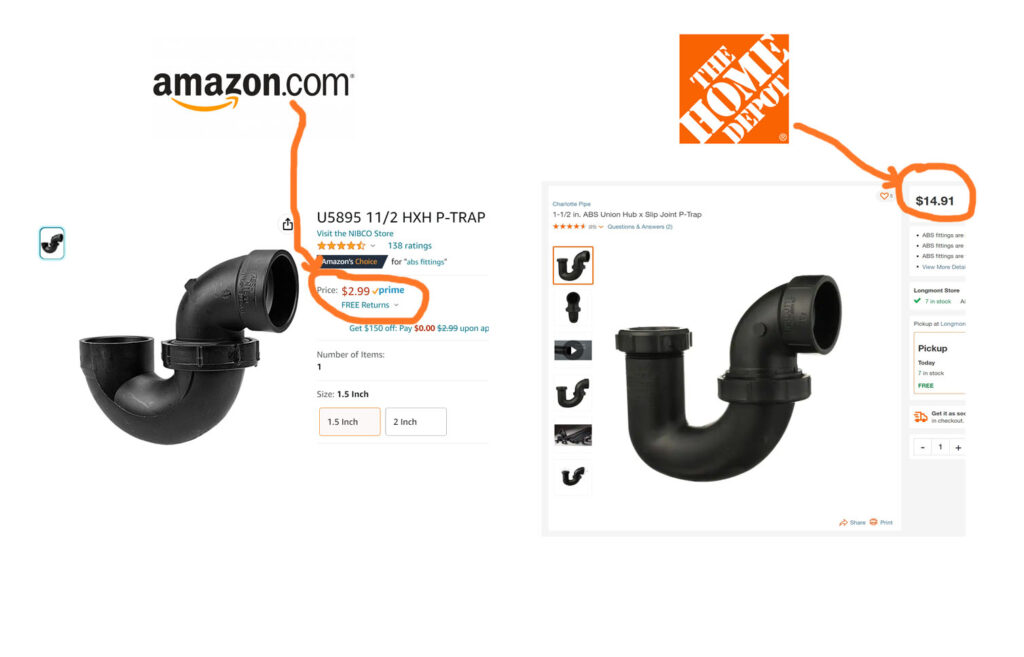 - Amazon is now better than Home Depot for many things. Light fixtures, sinks and faucets, even saw blades and big rolls of PEX pipe. All with a way wider selection, fast shipping and at lower prices than the older retailers. I’ll still get my lumber and drywall and paint locally of course, but for everything else I check online first. The bonus is that this also cuts down my mid-project trips to the store by about 80%.
