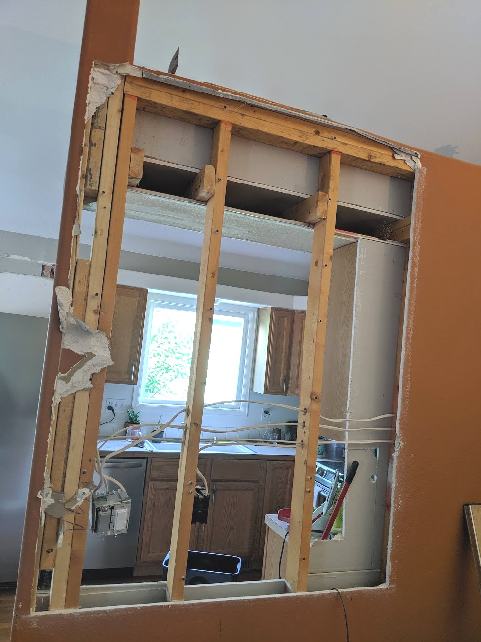 - If your kitchen is on the first floor with another level above, the wall may be load bearing, especially if it is perpendicular to the floor joists above it. In this case you can still open up the wall and replace it with a beam and posts. But that’s a task for experienced builders – bring in some help if you don’t know how to do this already.