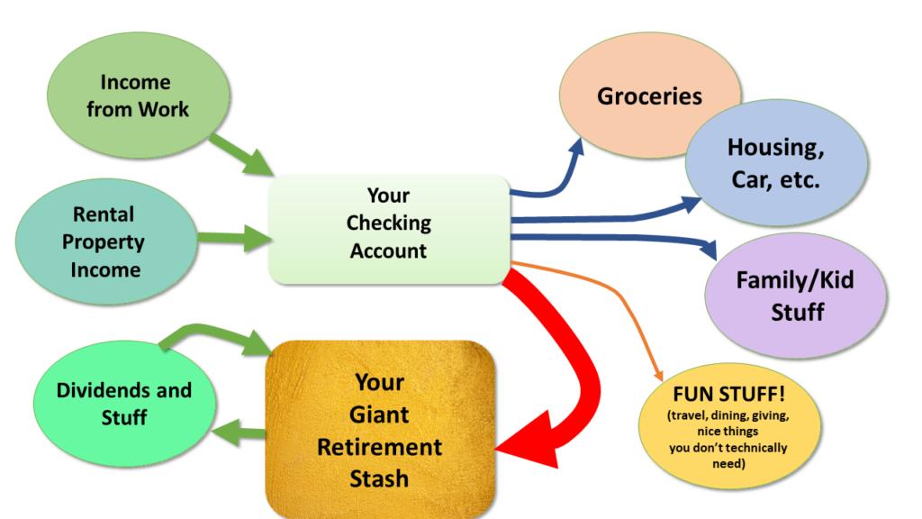 And whenever these people do get extra money, their first instinct is to stash it away on top of the already-too-big pile. In diagram form, their money flow looks like this: