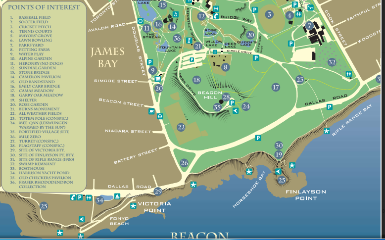 Beacon Hill Park from 6:00 PM Onwards – right at #19 on this map. This was a beautiful spot to hang out and although our group of 20 was smaller than usual, the custom Mustache pie someone brought, late night meal downtown, and my 1 hour midnight barefoot walk back to the house made it especially memorable.